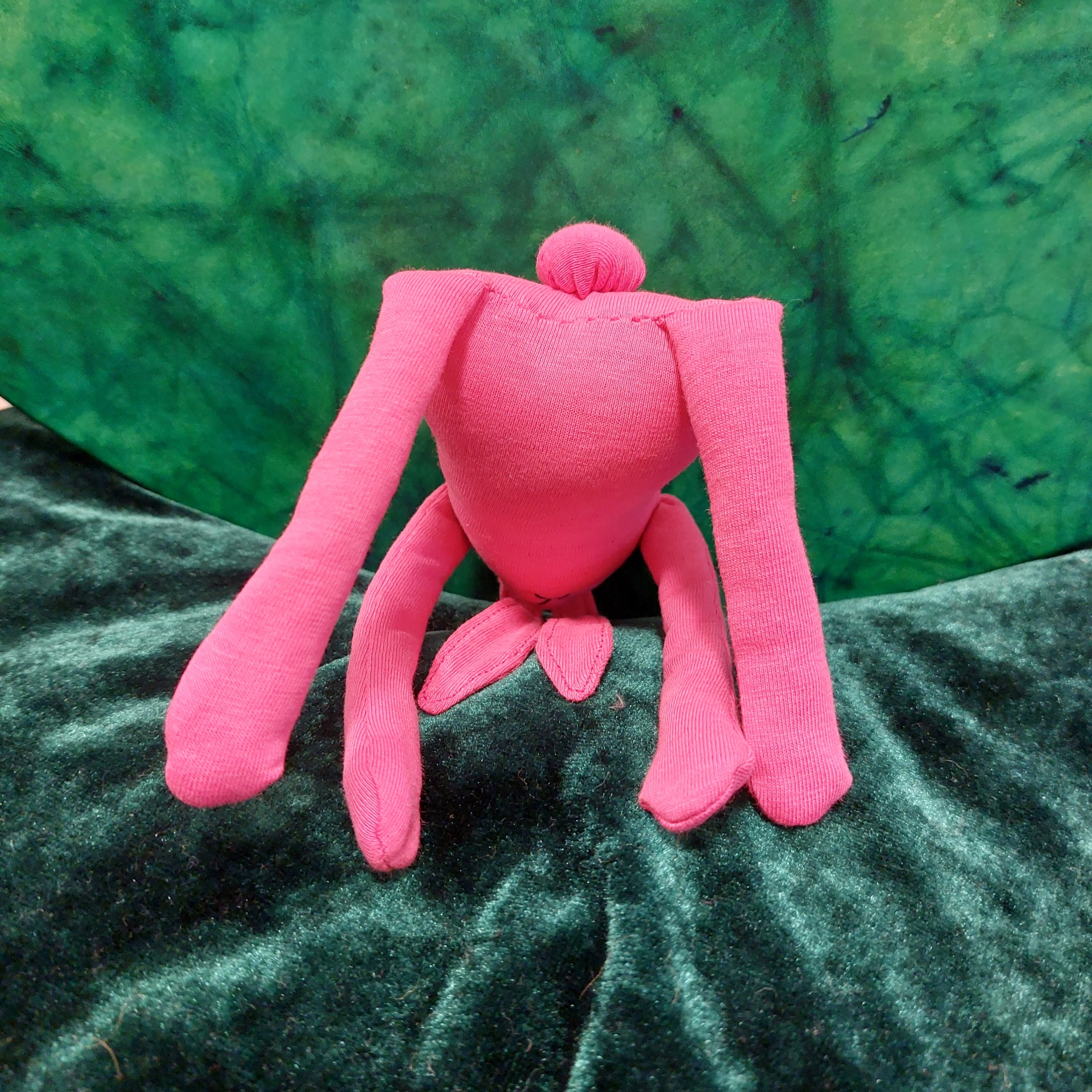 Pirteän pinkki, pehmoinen ja taskukokoinen pitkäkorva. Kropan pituus n. 12 cm. Jäniinin materiaalina on kierrätystrikoo, helmisilmät ja sisuksissa polyesterivanua. Pupulla on tietysti myös töpöhäntä.