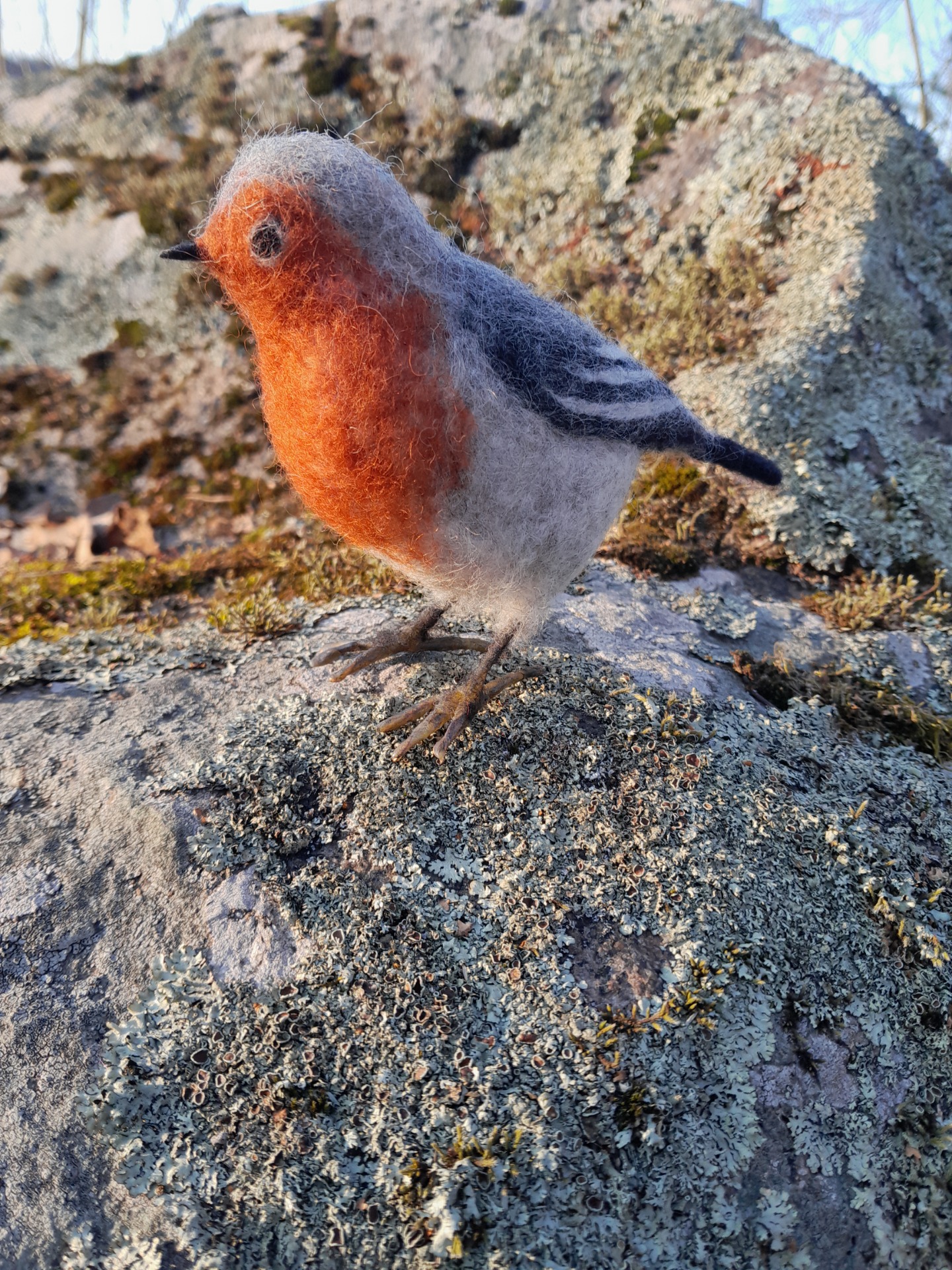 Neulahuovutettu aidonnäköinen lintu,punarinta.