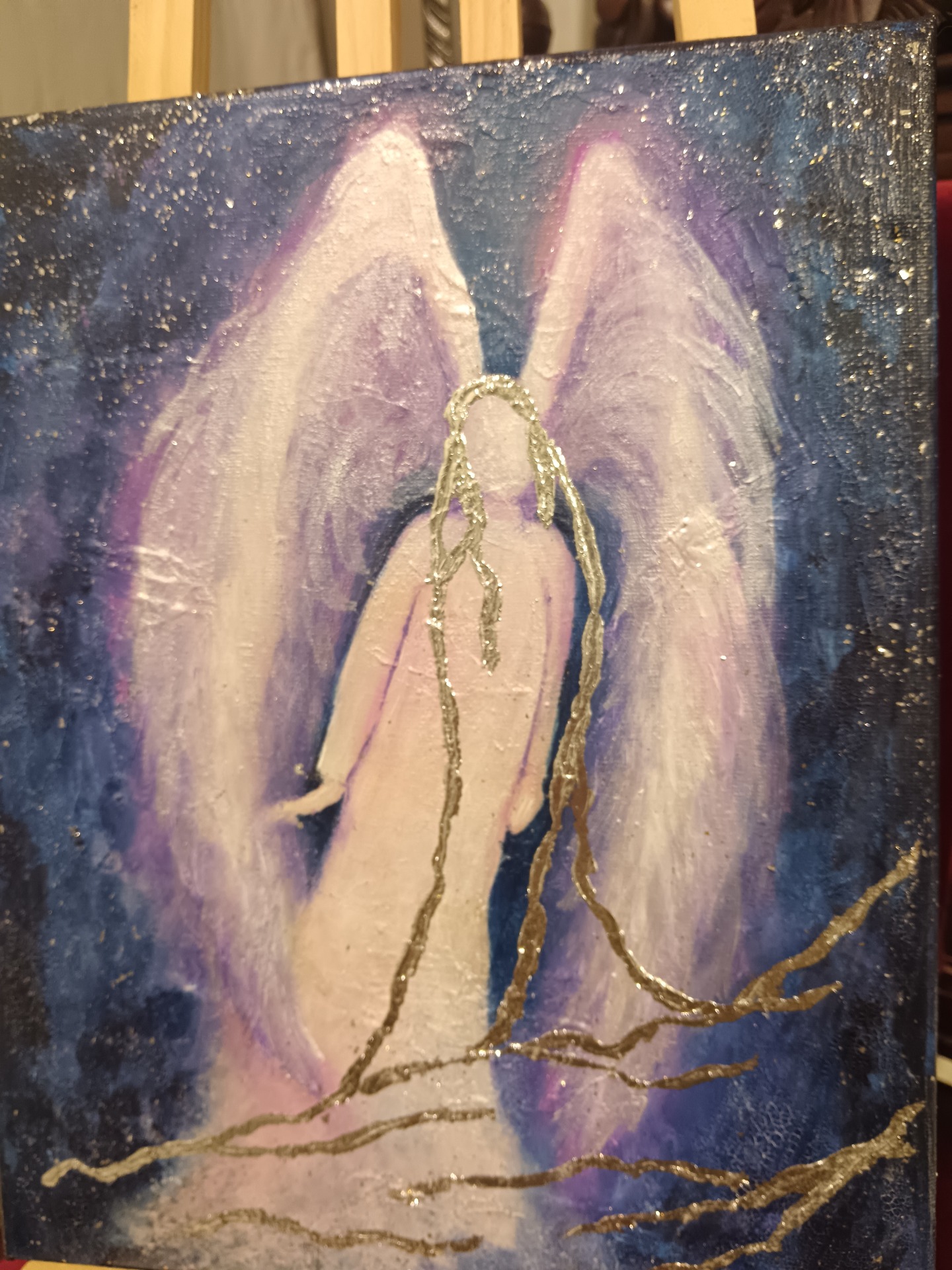 Akryylivärit, lehtihopea
